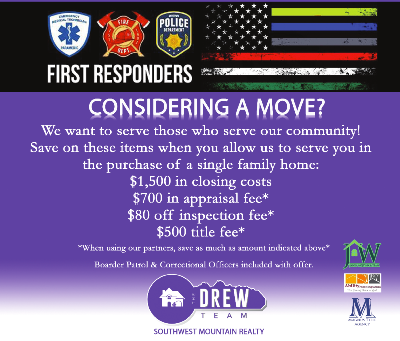 You work tirelessly, often working long shifts and sacrificing holidays, to keep our families safe and healthy. At The Drew Team, we want to make sure you are taken care of when it’s time to buy or sell your home.