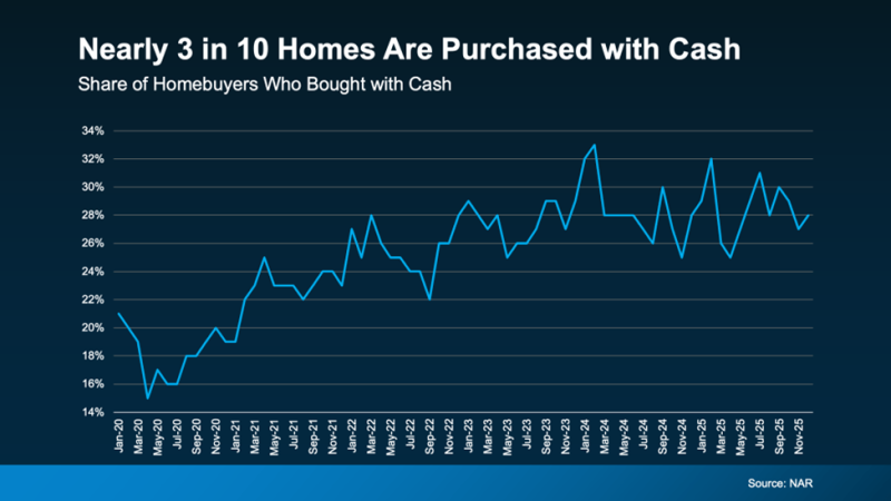 Nearly 3 in 10 homes purchased today are bought in cash, according to the National Association of Realtors (NAR). That’s far more than the pre-pandemic norm (see graph below):