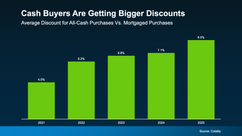 According to Cotality, all-cash buyers tend to spend roughly 9% less on the house than buyers who use a mortgage. That’s because some sellers are willing to accept lower offers to get a deal done quickly, with more certainty of closing, and fewer financing hoops to jump through. As Cotality explains: